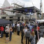 Stadt Willich. Eine Richtkrone mit gelben und grünen im Wind flatternden Bändern, eine gewaltige Discokugel unter einem Stahlgerüst mit provisorischer Decke, frische Würstchen vom Grill, Salate und Bierwagen – für die ersten Wohnhäuser für anerkannte Flüchtlinge wurde jetzt am Ende der Fontanestraße in Schiefbahn ein zünftiges Richtfest gefeiert. Eingeladen waren auch die Nachbarn, schließlich haben …