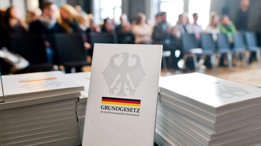 Das Grundgesetz im Zentrum: Einbürgerungszeremonie in Hannover Quelle: pa/dpa/Julian Stratenschulte